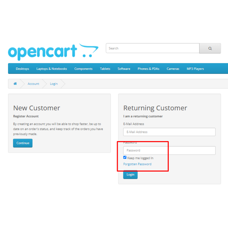 • * Enable Keep logged In checkbox on account login page.