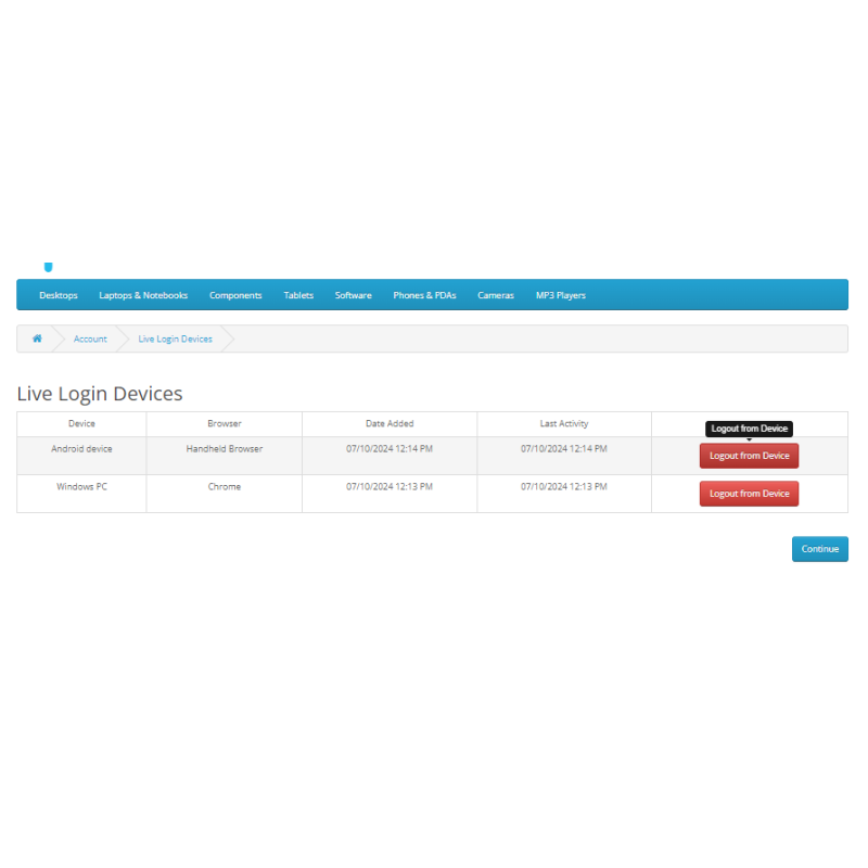 This extension helps to keep customers logged into your website unless they explicitly choose to log-out. It saves your customers time by keeping them logged into your website securely, avoiding the annoyance of forgetting usernames & passwords. Customers can see their logged devices and last activity on their account. For security customer can logout their account from any active sessions with one click.